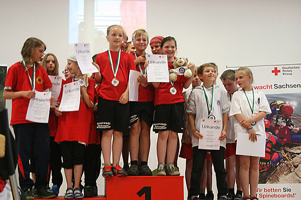 Rund 230 Teilnehmer/-innen der Rotkreuz-Gemeinschaft Wasserwacht aus den sächsischen DRK Kreisverbänden Bautzen, Chemnitzer Umland, Chemnitz, Dresden, Freital, Hohenstein-Ernstthal, Leipzig, Muldental, und Weißwasser wetteiferten am Samstag, dem 13.06.2015, um den Titel beste Rettungsschwimmer/-innen. Kinder und Jugendliche kämpften in insgesamt 22 Teams in verschiedenen schwimmerischen Disziplinen und auf einem Erste-Hilfe-Parcours um die Plätze auf dem Treppchen in ihren Altersklassen. Dabei hatten die Mannschaften der DRK Wasserwacht Weißwasser mit einem ersten und zwei zweiten Plätze die Nase vorn. AK1 (8-10 Jahre):Platz 1: Weißwasser, Platz 2: Chemnitzer-Umland, Platz 3: Hoyerswerda AK2 (11-13 Jahre):